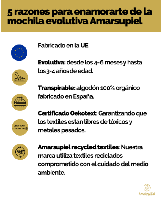 Die neue Amarsupiel evolving Babytrage in Grau ist die beste Babytrage auf dem Markt. Es ist ein verstellbarer, gepolsterter, atmungsaktiver und verstellbarer Tragesitz aus 100% Bio-Baumwolle und OEKO-TEX zertifiziert. Geeignet ab 6 Monaten bis zu einem Alter von 3-4 Jahren. Sein praktisches und elegantes Design sowie die Qualität der verwendeten Materialien machen ihn zur besten Babytrage für Ihr Baby.