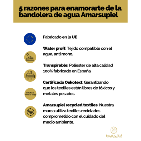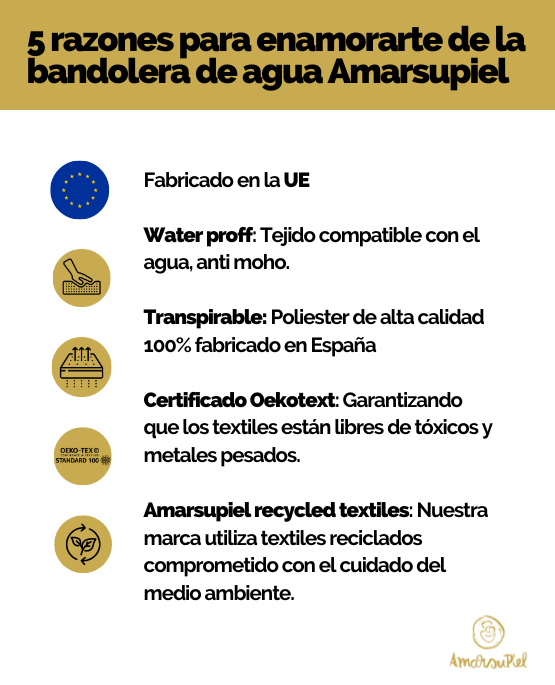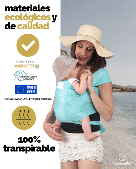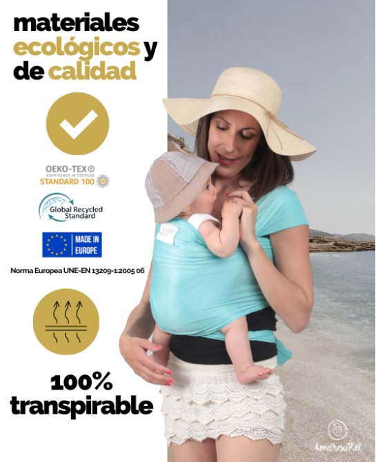 Das Amarsupiel Wassertragetuch, evolutiv und anpassbar, wird vollständig in Spanien und der Europäischen Union hergestellt, sowohl was das Gewebe als auch die Produktion betrifft. Außerdem verfügt es über Qualitätszertifikate wie: OEKOTEX STANDARD 100