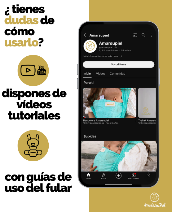 Auf unserem YouTube-Kanal findest du Videos, in denen wir dir erklären, wie man das Tragetuch richtig anlegt, um eine ergonomische Position zu garantieren.