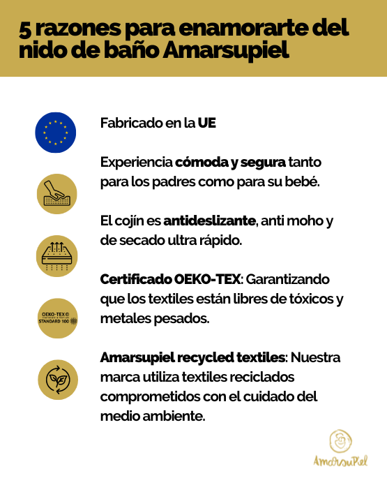 Recuerda: ¡si quieres disfrutar de una experiencia de baño cómoda con tu bebé, tanto para ti como para él, la almohada nido de baño de Amarsupiel es un imprescindible.