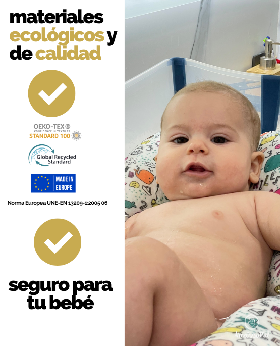 El cojín nido bebe de baño de Amarsupiel es ajustable, lo que hace de este producto el complemento perfecto para bañar a tu bebé en la ducha, en la bañera, en el lavabo (si tu bebé es muy pequeño) e, incluso en la piscina. De hecho, nuestra almohada nido de baño es recomendada tanto para recién nacidos como para bebés algo más mayores.