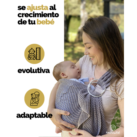 Como ves, aunque la bandolera de anillas de rejilla es muy práctica para el verano, es un sistema de porteo muy versátil y útil para cualquier época del año. ¡Lo podrás usar hasta que tu bebé pese entre 12 y 15 kilos!