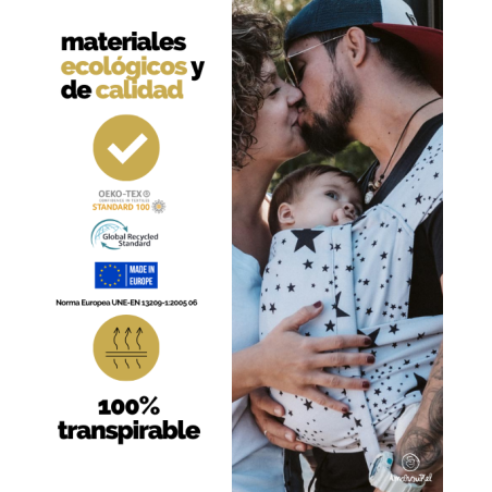OEKOTEX STANDARD 100: que certifica que nuestros textiles de los portabebés de Amarsupiel están libres de tóxicos y metales pesados. Incluido el proceso de tintado, bordado y serigrafía.