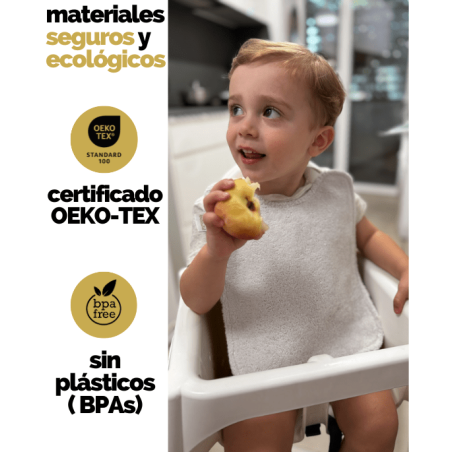 Sans aucun doute, les bavoirs avec élastique sont les plus pratiques. Après de nombreuses recherches, nous avons trouvé un tissu à la fois résistant et doux, avec un grammage parfait : une éponge de haute qualité utilisée pour fabriquer nos bavoirs.