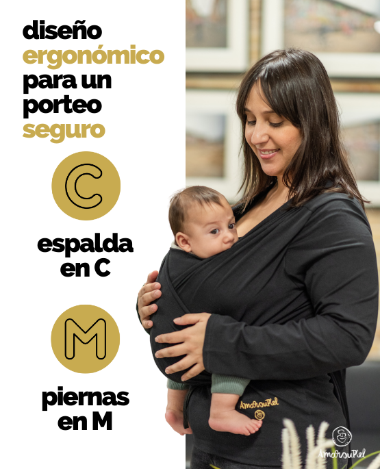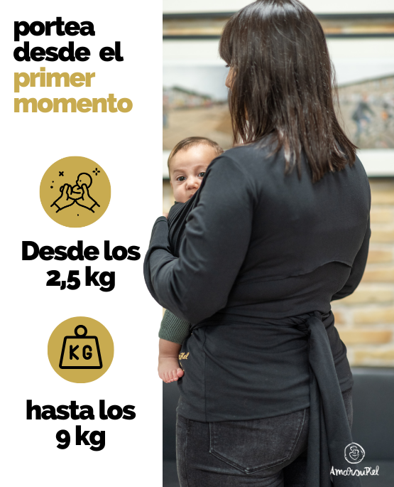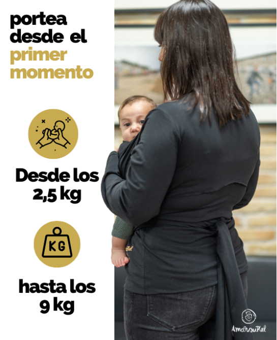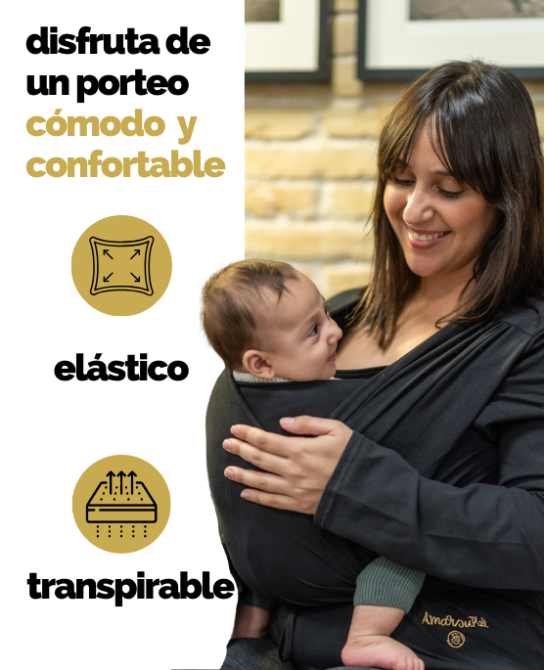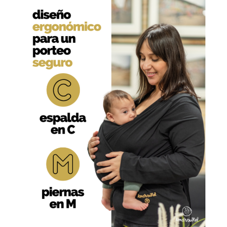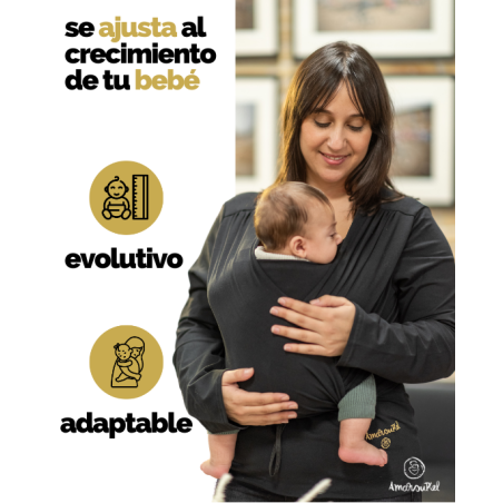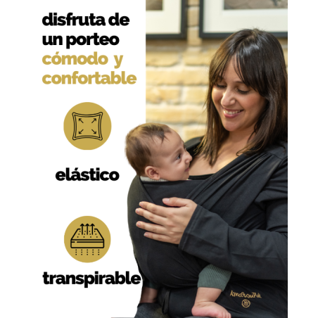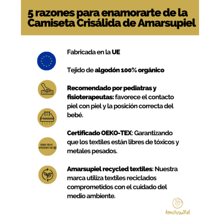 Le T-shirt porte-bébé Amarsupiel chrysalide à manches longues est entièrement fabriqué dans l'Union européenne. Son tissu technique développé par des ingénieurs textiles espagnols permet un ajustement et une récupération optimale du vêtement. Conçu par et pour des mères avec des professionnels experts dans le secteur du portage ergonomique.