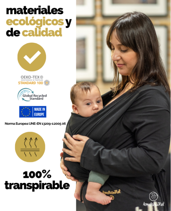 Enfin, nous tenons à vous rappeler que tous les systèmes de portage Amarsupiel sont conformes à la norme européenne UNE-EN 13209-1:2005 06, ainsi que le T-shirt porte-bébé chrysalide à manches longues Amarsupiel. Tous les porte-bébés Amarsupiel, y compris l'écharpe élastique, sont des produits entièrement fabriqués en Espagne et en Allemagne. Et que, tant son genre que sa production prône un prix équitable pour les pièces dans tous ses processus. Bon portage ;-)